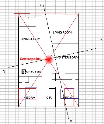 3. I have marked the centrepoint of the home. Even if you are just renting a bedroom, you can take a compass reading of the house and check the `Eight House' of your room to see whether Bedroom 1 is better or Bedroom 2.