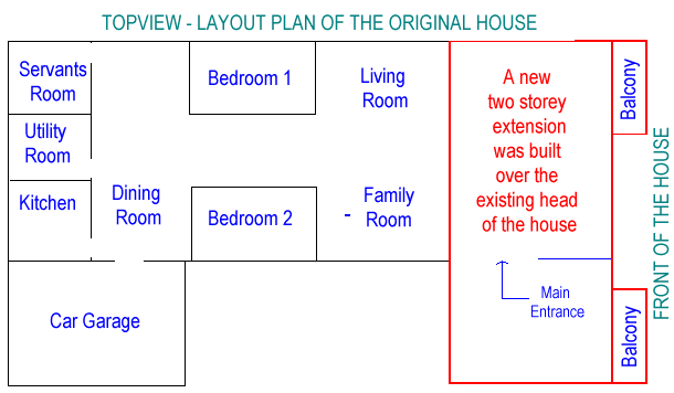 My next door neighbour sold their house  to a weathy family. They also `chopped off' the head of their house  (see picture above) and build a grand extension similar to what my  grandfather had built. (I was little then).