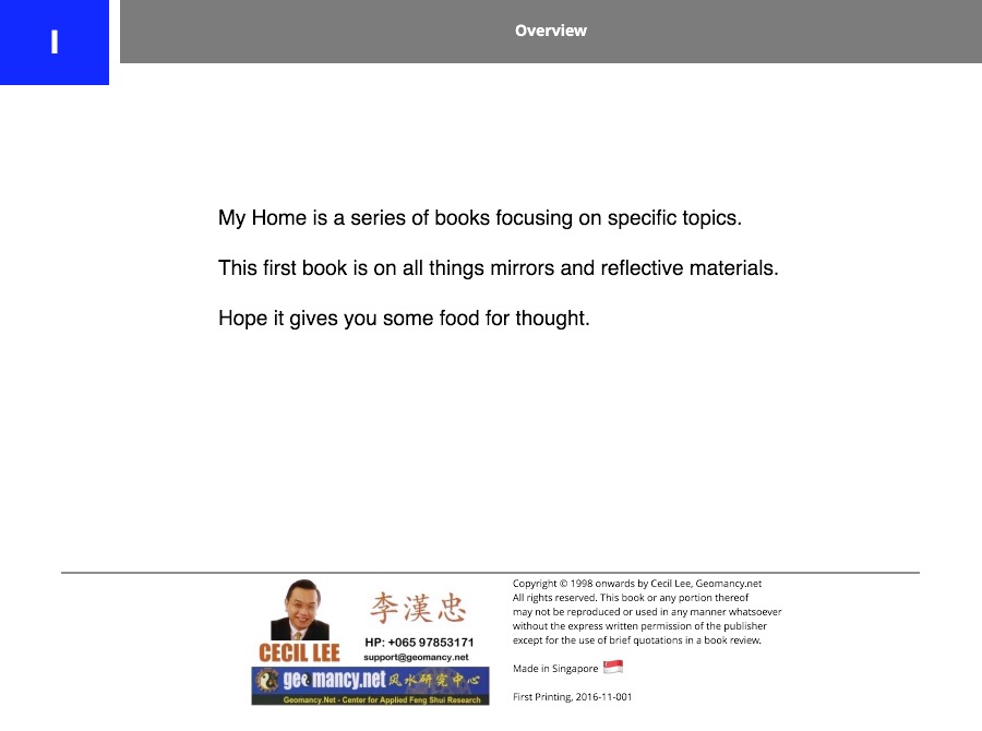 2016: My Home: Mirrors: Book 1My Home: Mirrors: Book 1 (1st Edition)by Master Cecil LeeEverything you need to know about Mirrors and Reflective SurfacesBuy It Buy It! Hits: 255625 2016: Flying Stars: Using an Ordinary Compass: Book 1 Next Geomancy Press E-Bookstore Prev